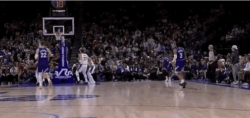 隨后又在喬治準備送出絕殺三分之際